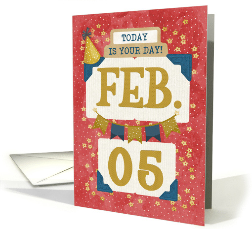 | Title: | February 5th Birthday Date Specific Happy Birthday Party Hat and Stars |