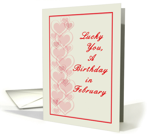 | Artist Notes: | Birthday card for February for in a light green, light red hearts and red writing on the front of the card. You are welcome to change the wording on the inside of the card and if you should purchase it, thanks so much. |
