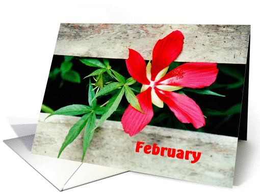 | Artist Notes: | February Birthday, red wild Hibiscus flower peeking between two boards of a fence. Please contact me through GCU if you have any special requests. You are welcome to change the wording on the inside of the card and if you should purchase the card, thank you so much. |
