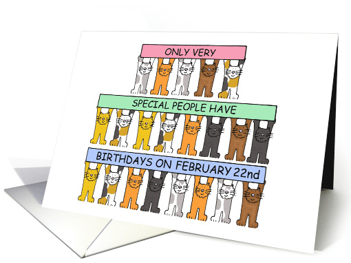 | Title: | February 22nd Birthday Cartoon Cats Standing Holding Up Banners |