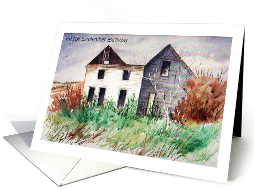 | Artist Notes: | This is a September birthday card, featuring my watercolor of an old house in Nebraska. You can change the inside message at checkout, if you wish. 031112 |