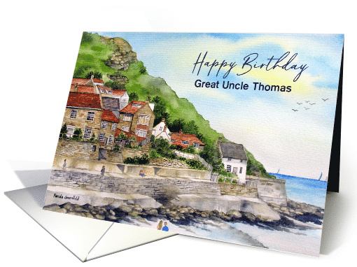 | Title: | For Great Uncle on Birthday Runswick Bay Seascape Watercolor Painting |