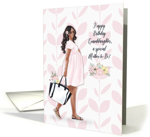 | Artist Notes: | Send this lovely, pretty in pink Happy Birthday design to your granddaughter who is expecting a baby. The design includes a modern young African American woman carrying a purse full of flowers. The background is a pattern of pink flowers. The front sentiment is "Happy Birthday Granddaughter, a special Mother-to-Be. |