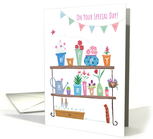 A Birthday is a Special Day for everyone so delight that person with this lovely flower and plant themed card design set in a glossy white card. ©DaleSimpson
