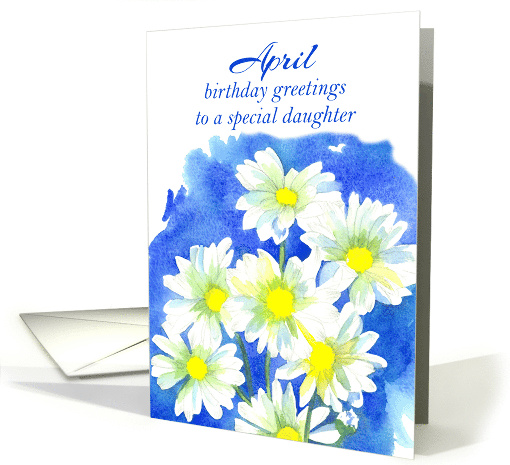 Title: | Happy April Birthday Daughter Shasta Daisy Flower Watercolor |