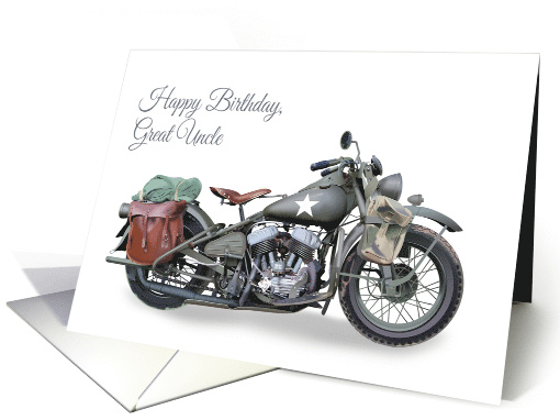 | Title: | Great Uncle Birthday Featuring a Classic American Military Motorcycle |