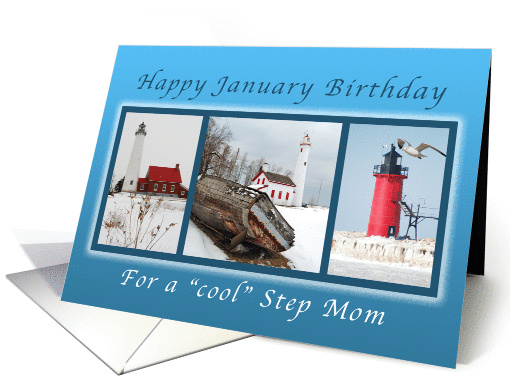 Happy January Birthday for a Cool Step Mom, Lighthouses in Winter