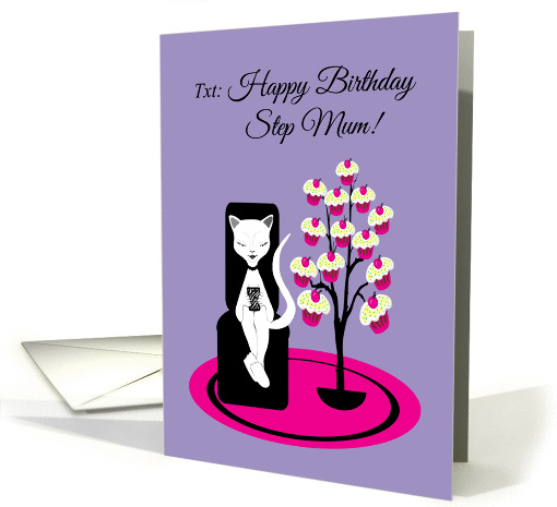 Step Mum Birthday Humor Funny Texting Cat with Cupcake Tree