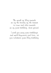 If you have a friend with a birthday in May, this is the card for you! The cover features my photo of beautiful white daisies, a white border, and blue text. These cheerful daisies will make the birthday very special. You can change the inside message, if you wish. ©Gail Pepin