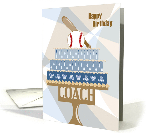 | Artist Notes: | Happy Birthday card for baseball sports Coach. Bat and baseball on top of a three tiered decorated cake with pedestal. |