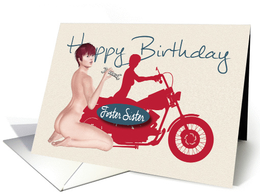 Title: | Naughty Pin Up with Motorcycle Birthday for Foster Sister |
