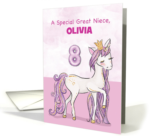 | Title: | Custom Name Great Niece 8th Birthday Pink Horse With Crown |
