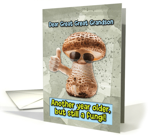 | Title: | Great Great Grandson Happy Birthday Thumbs Up Fungi with Sunglasses |