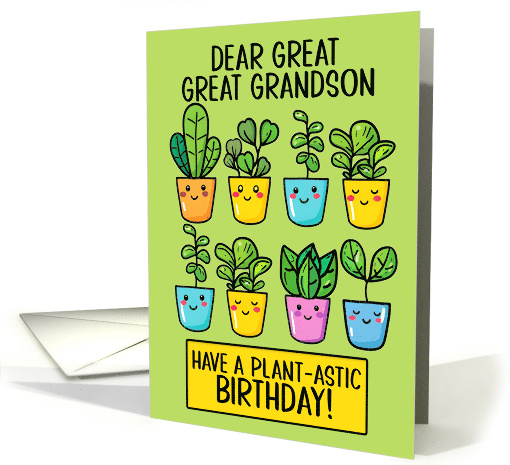 | Title: | Great Great Grandson Happy Birthday Kawaii Cartoon Plants in Pots |