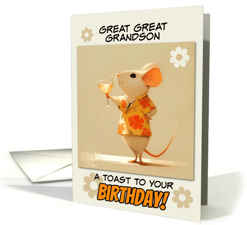 | Artist Notes: | A sweet little rat in a hawaii flower shirt is lifting a cocktail glass in your honor on a beige background with a flower pattern and the text "A toast to your birthday!" A fun card to send to your wonderful great great grandson for their special day. |