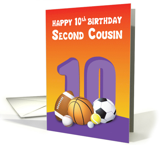 | Artist Notes: | A football, basketball, soccer ball, baseball, lacrosse ball and tennis ball are on the front of this card. Send 10th birthday wishes to a second cousin with this card. |