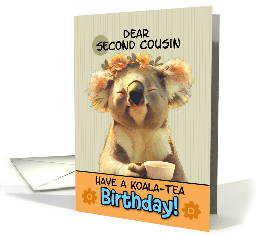 Title: Second Cousin Happy Birthday Blissful Koala Bear with Cup of Tea