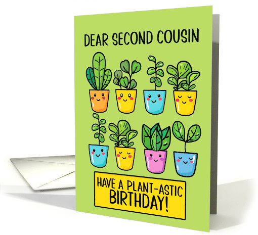 | Title: | Second Cousin Happy Birthday Kawaii Cartoon Plants in Pots |