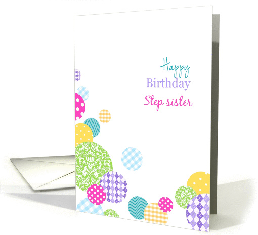 | Title: | Happy Birthday step sister - Colorful pretty pattern dots on white |