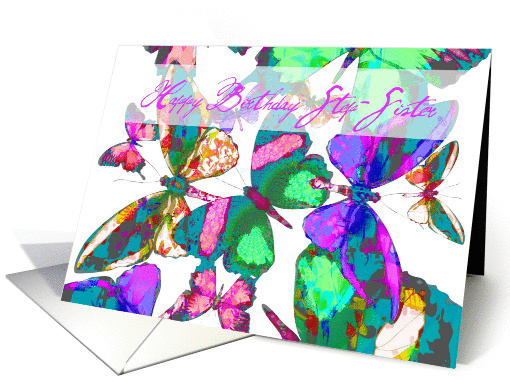 | Title: | Happy Birthday Step-Sister, butterflies in flight of jewel colors! |