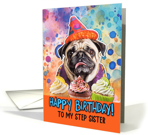 | Title: | Step Sister Happy Birthday Pug and Cupcakes |