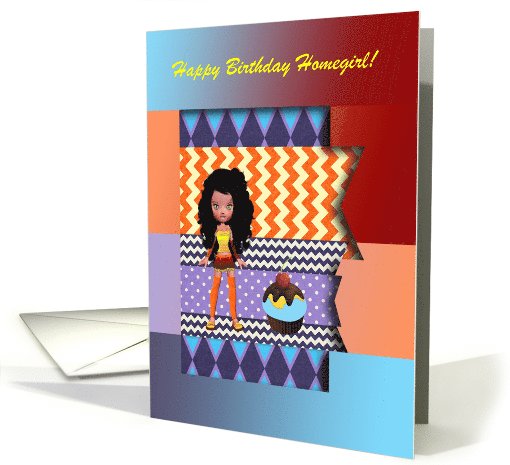 Happy Birthday Homegirl, Girl with Cupcake, Custom Text