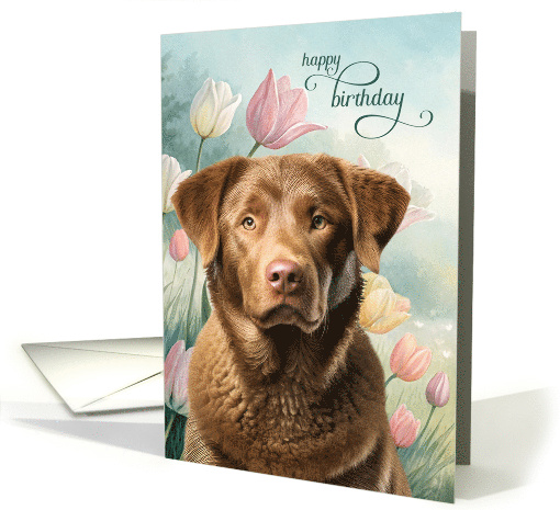 Birthday Chesapeake Bay Retriever Dog with Pastel Tulips