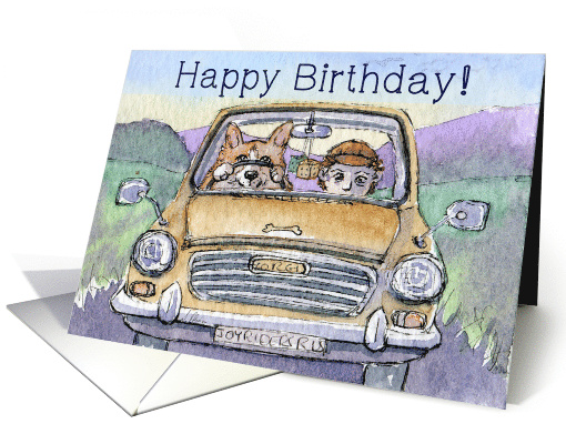 | Title: | Happy Birthday, corgi dog driving his hoomun |