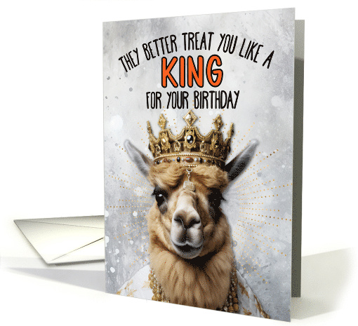 It’s all about the animals in my designs and this birthday series is no exception. Pick your spirit animal, your totem, the animal that speaks to you or the person you are sending this card to. There are over 70 regal animals to chose from! Like this alpaca dressed in his kingly garb and crown on a grey grunge watercolor background with splatter demanding "They Better Treat You Like a King for Your Birthday". Fun card to send to a birthday boy of any age. (look out for a queen birthday series, it’s in the works and soon to follow!)