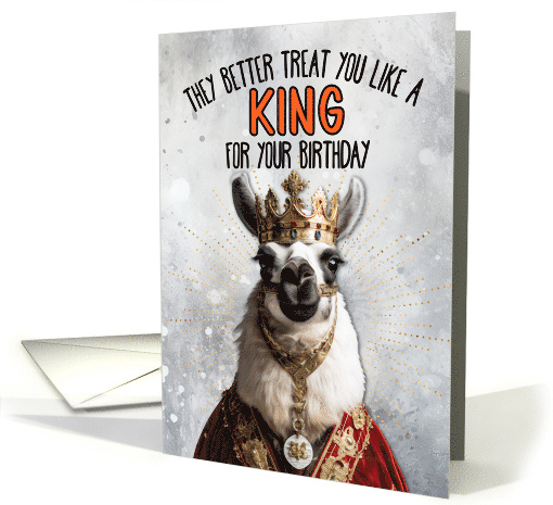 It’s all about the animals in my designs and this birthday series is no exception. Pick your spirit animal, your totem, the animal that speaks to you or the person you are sending this card to. There are over 70 regal animals to chose from! Like this llama dressed in his kingly garb and crown on a grey grunge watercolor background with splatter demanding "They Better Treat You Like a King for Your Birthday". Fun card to send to a birthday boy of any age. (look out for a queen birthday series, it’s in the works and soon to follow!)
