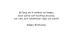 Inside: | As long as it makes us happy, and we're not hurting anyone, we can act whatever age we want! Happy Birthday |