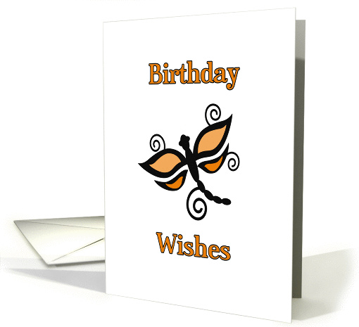 Pretty, orange dragonfly featured on this sweet "birthday" greeting card.