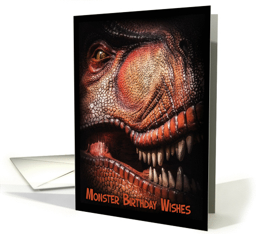 | Artist Notes: | Emerging out of the darkness a Tyrannosaurus brings you monster wishes for a birthday, a great card for the Dino lover. An element of danger and fun for Children and Adults |