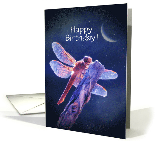 Dragonfly Happy Birthday! There is something amazing and extraordinary about dragonflies! They are kind of little mystical creatures. There is someone special about the moon too! This customizable Happy Birthday card is for that extraordinary, amazing, unique, exceptional, special, and fun birthday person!