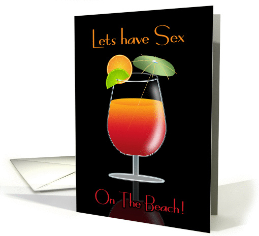 A fun birthday card with the recipe for "Sex On The Beach" A sweet tasty cocktail for those who love to shake it.