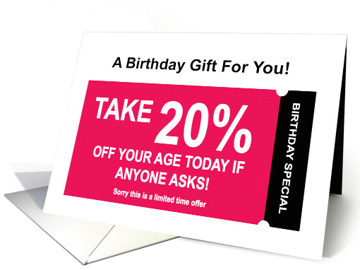 Funny Birthday Card With Coupon To Take 20% Off Your Age