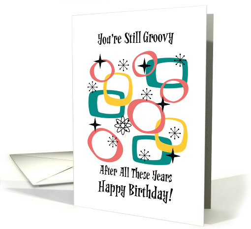 Give someone special a funny and cheerful Happy Birthday card to let them know how awesome you think they are. Mid-Century Modern shapes from the Atomic era make up the design.