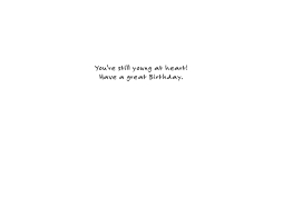 A brightly coloured blue, green and yellow comic cartoon card that shows nine cartoon green and yellow birds sitting on a wire. The middle bird is daring to be different by hanging upside down. The caption on the front of the card is `Getting older isn`t the same thing as growing up` This is followed up by the caption inside the card which is ` You`re still young at heart! Have a great birthday.'