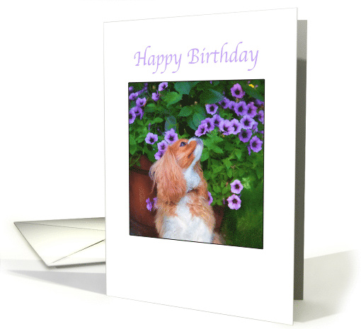 | Title: | Happy Birthday Cavalier King Charles Spaniel With Flowers |
