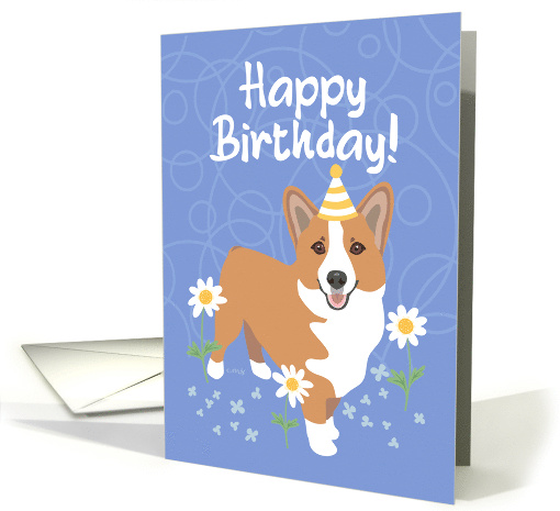 | Artist Notes: | Cute graphic design of Corgi dog standing with flowers and party hat on blue background wishing happy birthday. |