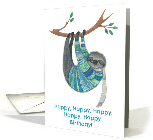 | Title: | Happy Birthday To a Great Person Sloth in Teal Sweater |
