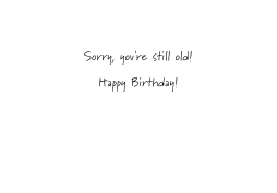 Humorous Birthday card with a cartoon showing a wizard casting a magic spell the words abracadabra and poof are there. Inside says: Sorry, you're still old! Happy Birthday!