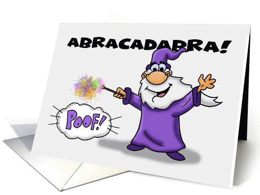 Humorous Birthday Card With Wizard Casting A Spell Abracadabra
