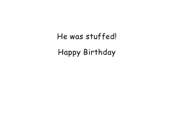 Humorous Birthday Card with a cartoon teddy bear on a blue-green background. The words say: Why didn't the teddy bear finish eating the birthday cake? Inside says: He was stuffed! Happy Birthday