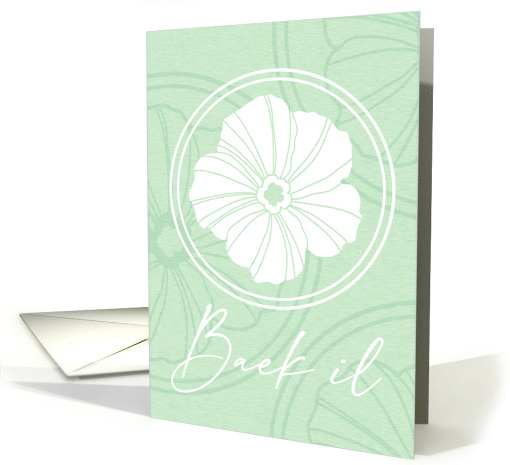 The Hibiscus, Korea's national flower, is a powerful emblem of eternity and resilience. This thoughtful Baek-il card, presented in a serene sage green, carries that same meaningful symbolism. It's the perfect way to honor '백일' (pronounced Baek-il), the beautiful tradition of celebrating a baby's first 100 days with hopes for a long and prosperous life.