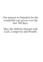 Our prayers to Samshin for the wonderful care given over the last 100 days.