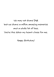 This card features a cute, hand-drawn style cartoon of two best friends, one blonde and one redhead, sharing a warm and happy hug. Floating red hearts emphasize the love between them. The text "Happy Birthday My Unbiological Sister" makes this card's purpose clear and heartfelt, perfect for a best friend who feels like family.
