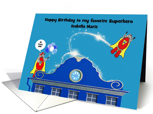 | Title: | Birthday, custom name age, superhero raccoons, above city building |