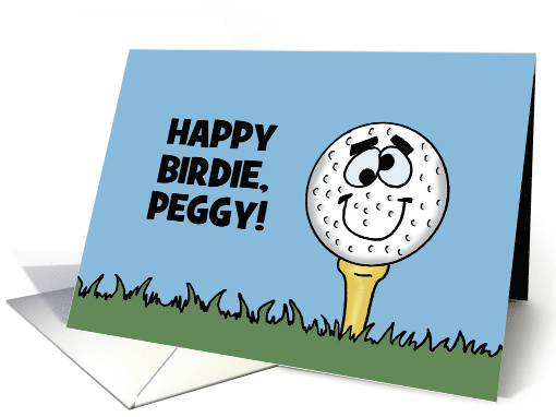| Artist Notes: | Humorous Custom Golf Themed Birthday card for any name, with a cartoon golf ball on a tee. The words say: Happy Birdie, Any Name! Inside says: Hope your day is Tee-riffic! |