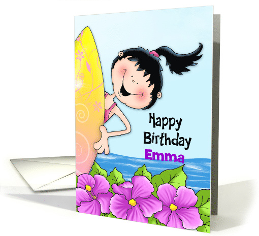 | Artist Notes: | Take a look behind the tropical flowers and you might find a whimsically happy surfboarding birthday girl! |